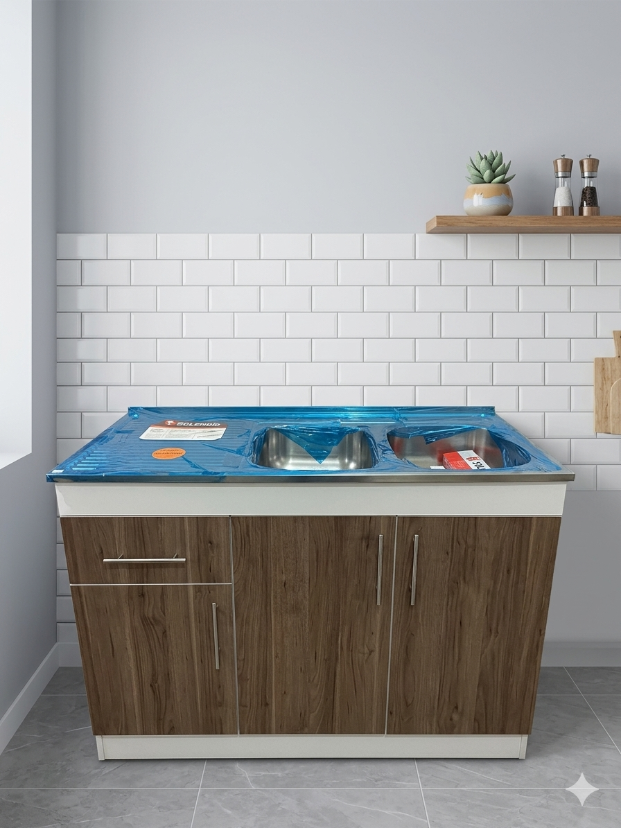 Mueble Lavaplatos de 1.20m con Cubierta de Acero